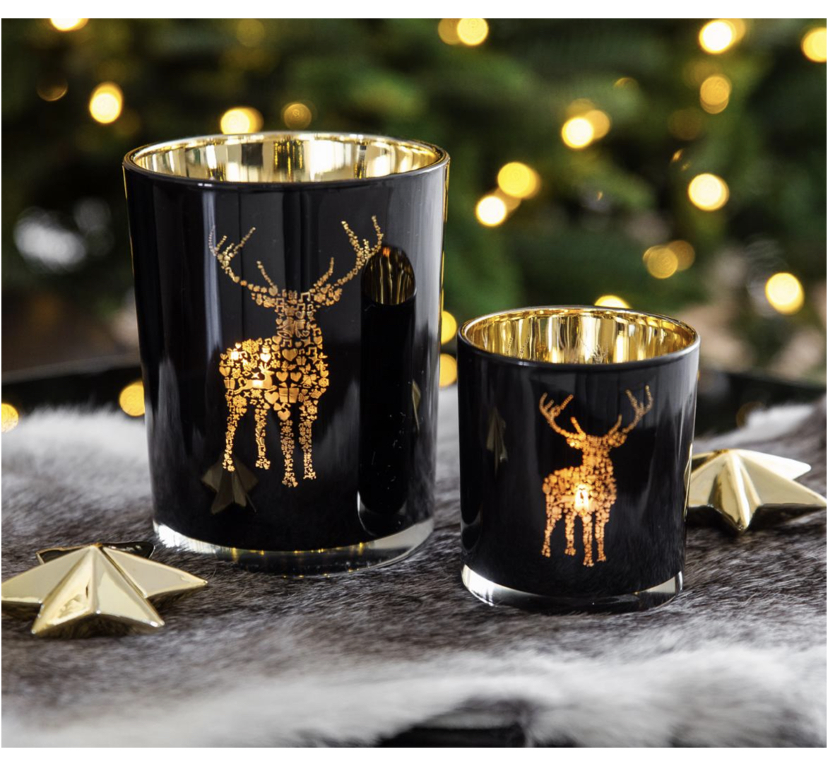 Das 2er Set der Glas-Windlichter FANCY mit Hirsch-Motiv von Edzard aus Bremen setzt einen winterlich festlichen Akzent im Haus oder auch draußen.