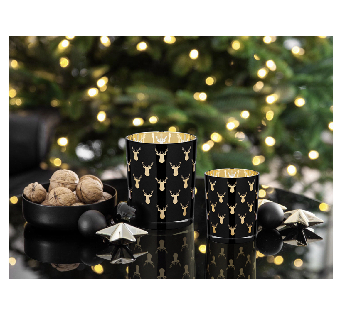 Dieses 2er Set der Glas-Windlichter ROSY mit Hirsch-Motiv von Edzard aus Bremen besteht aus zwei Windlicht-Größen - einmal in Höhe von 13 cm und einmal 8 cm - setzt einen winterlich festlichen Akzent im Haus oder auch draußen.
