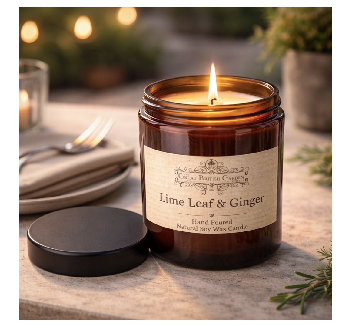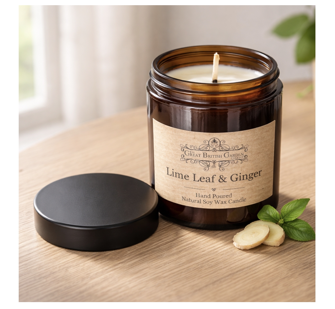 Die Duftkerze LIME LEAF & GINGER von The Great British Garden Company.