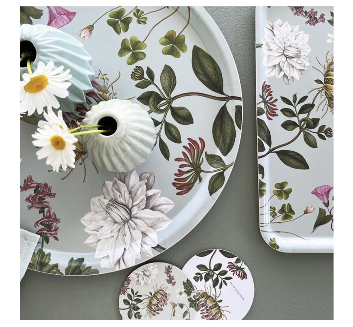 Aus dem dänischen Designhaus Koutstrup & Co. das entzückende FLORA DANICA Tablett mit Motiven von Wildpflanzen aus dem botanischen Atlas Flora Danica.