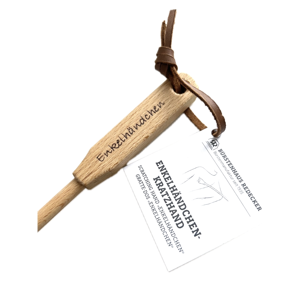 Auf der Suche nach einer Bezeichnung für diesen Artikel hat das Bürstenhaus Redecker erfahren, dass in Japan ein Artikel solcher Form als "Enkelhändchen" bezeichnet wird.