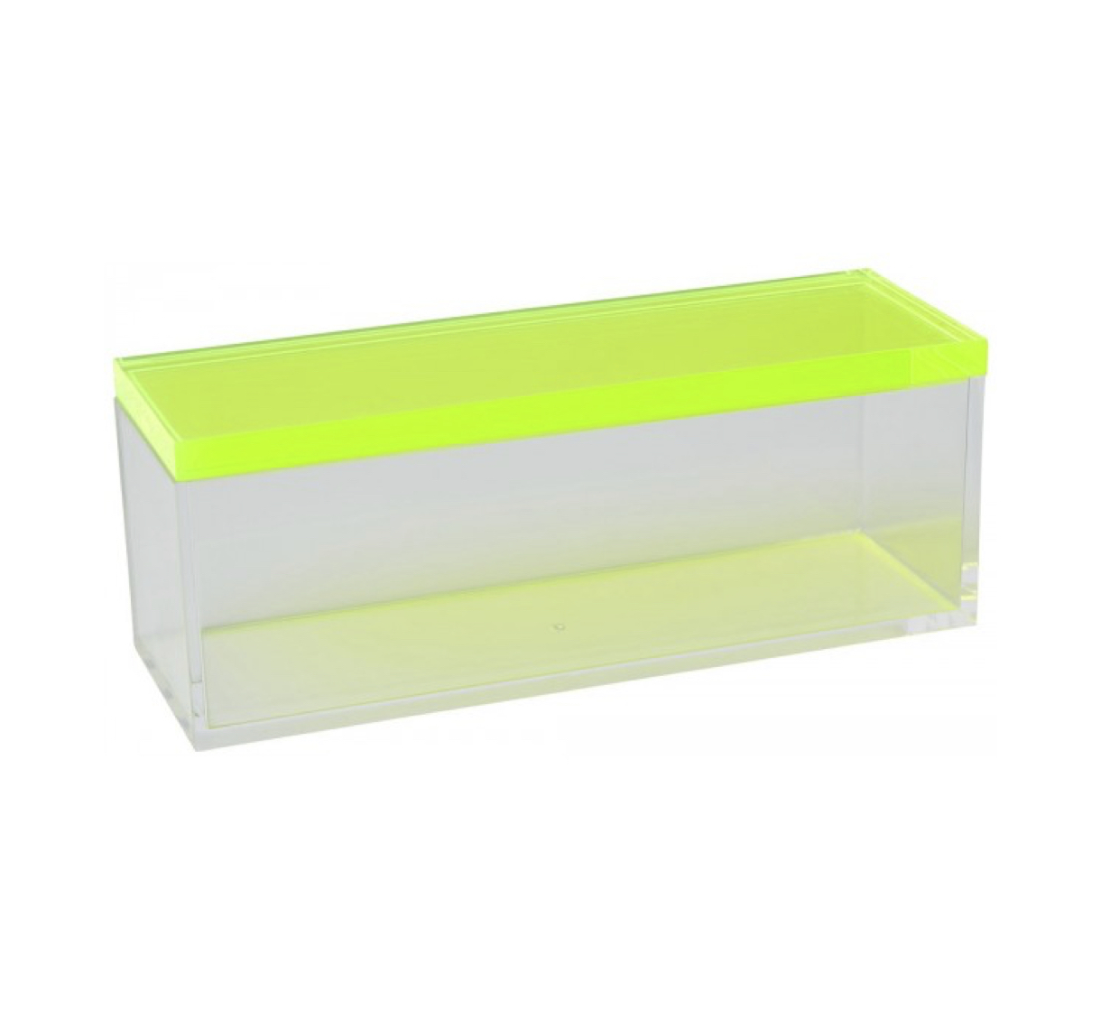 Länglicher Acryl-Behälter mit grauem Deckel von Gift Company.