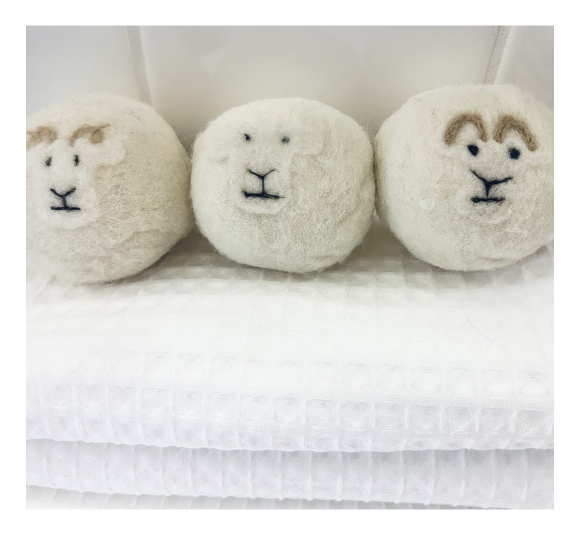 Die LITTLE BEAU SHEEP LAUNDRY BALLS Trocknerbälle aus 100% Wolle stellen den Brecknock Cheviot Hills Schaf dar.